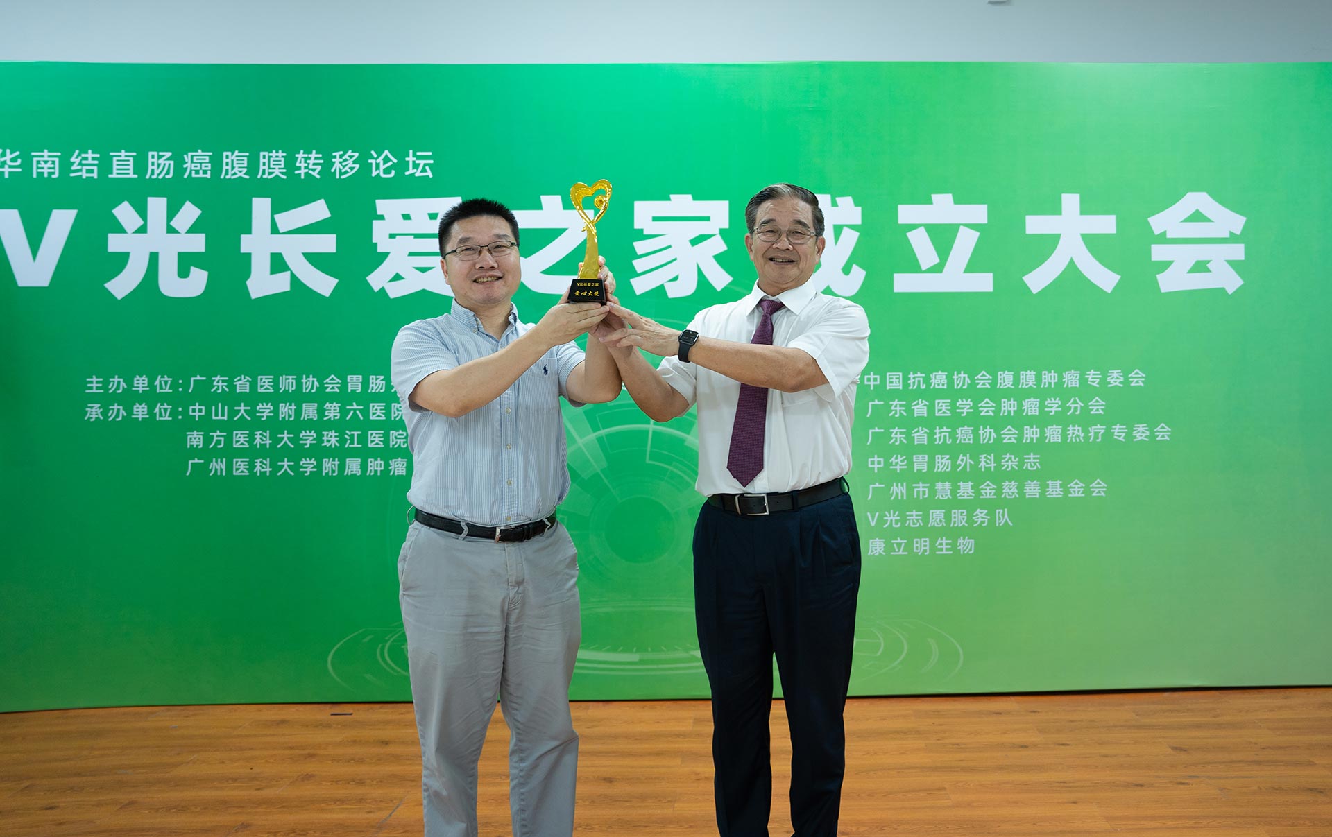 在成立大會上,“V光長愛之家”為鄒鴻志教授頒發(fā)了“V光長愛之家愛心大使”獎杯,作為腸癌早篩技術(shù)發(fā)明人,感謝鄒鴻志博士對腸癌檢測預(yù)防事業(yè)的付出及對公益事業(yè)的大力支持。