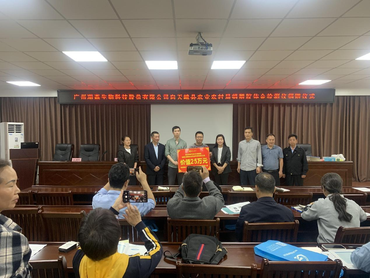 在捐贈儀式上,廣州瑞森生物科技股份有限公司向天峨縣捐贈先進(jìn)檢測儀器設(shè)備共5套,價值25萬元。表達(dá)了瑞森生物公司對廣西紅色革命老區(qū)“中國長壽之鄉(xiāng)”天峨縣的熱心支持,旨在希望未來能夠更好的為革命老區(qū)在食品安全快檢監(jiān)督工作開展方面提供技術(shù)保障和優(yōu)質(zhì)服務(wù),為天峨縣老百姓能夠吃上綠色、安全、放心的食用農(nóng)產(chǎn)品貢獻(xiàn)企業(yè)的一份力量。