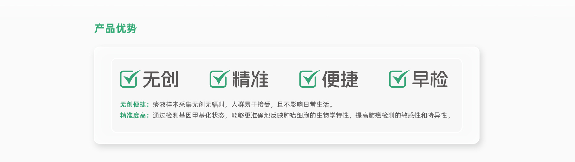 會安心?人類HOXB4、SRCIN1基因甲基化檢測試劑盒(熒光PCR法)于2025年5月29日正式獲批上市,這是首個痰液肺癌甲基化檢測試劑盒。 會安心?通過解讀痰液中脫落腫瘤細(xì)胞的基因異常改變(人類HOXB4、SRCIN1基因甲基化)進(jìn)行肺癌的早期檢測,幫助發(fā)現(xiàn)患者早期肺癌病變情 況, 有希望將肺癌阻斷在早期階段,從而達(dá)到提前預(yù)防和治療肺癌的目的。