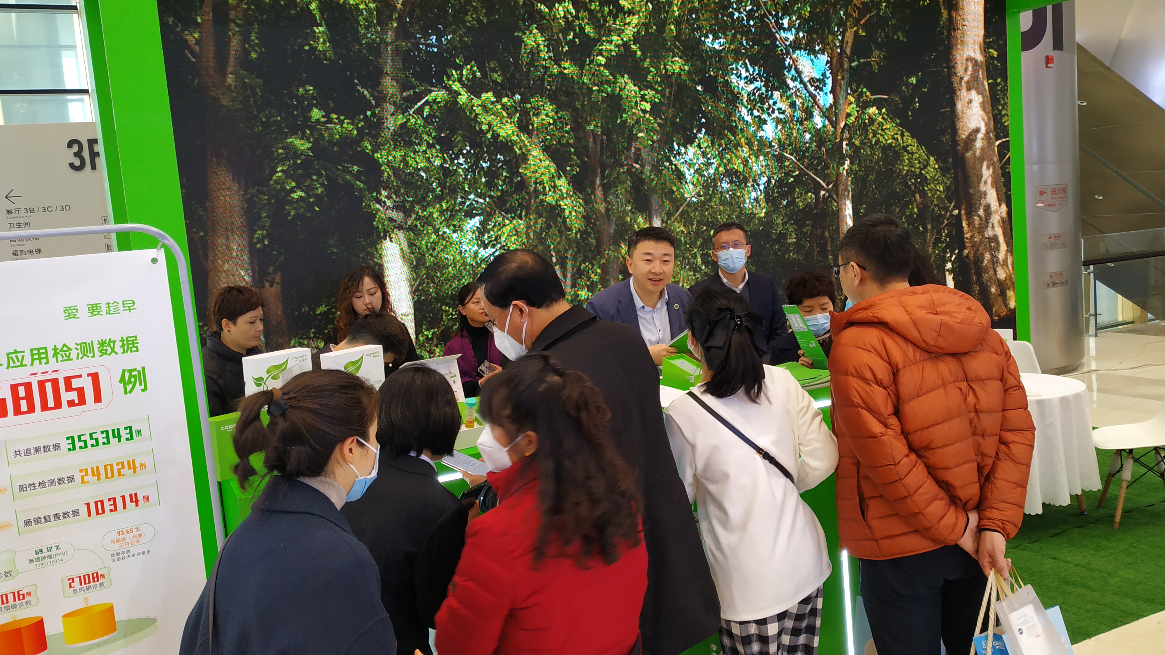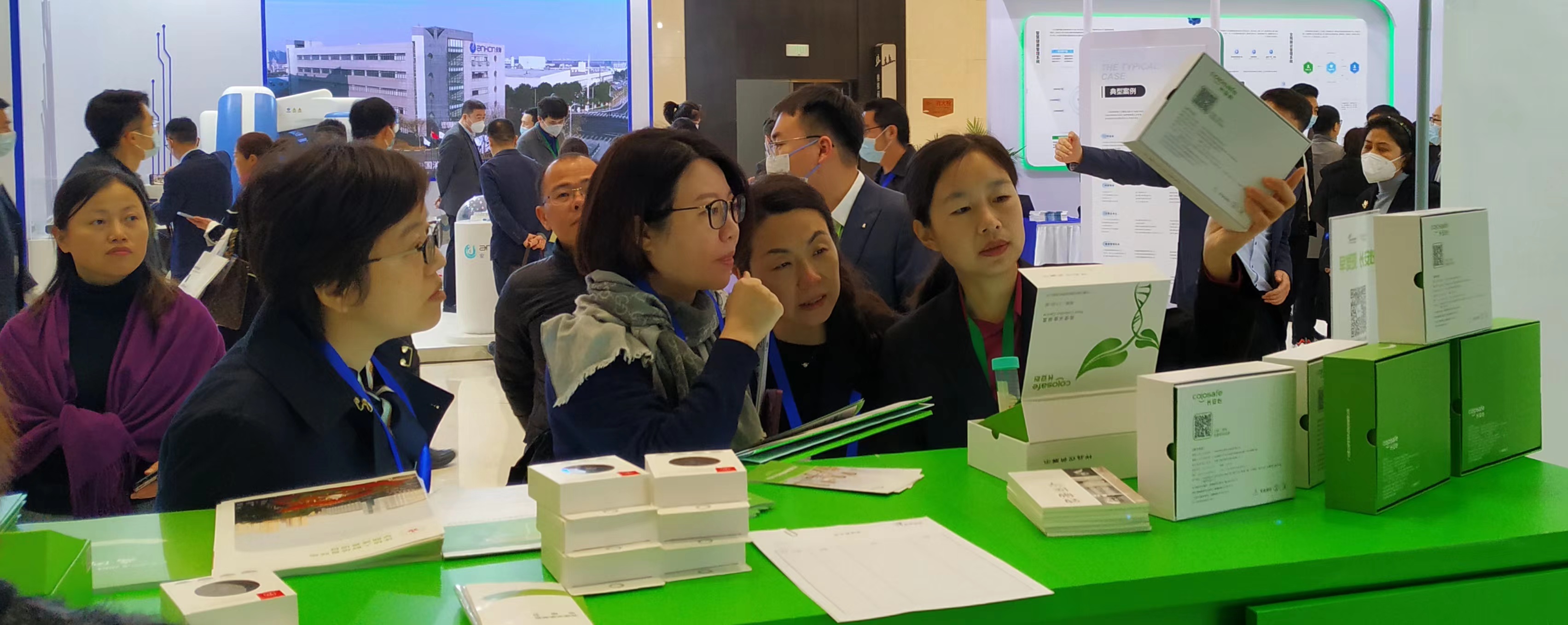 康立明生物攜長安心®糞便DNA腸癌檢測產(chǎn)品參展??盗⒚魃镎刮灰源笞匀粸樵兀源砩腿f物生長的綠色為抽象概念,構(gòu)建出一個Green Box,與現(xiàn)場展出的長安心®小盒子,在形態(tài)到寓意上相呼應,吸引了眾多專家、嘉賓到康立明生物展位打卡、交流,探討長安心®為健康管理系統(tǒng)提供的價值與成效。